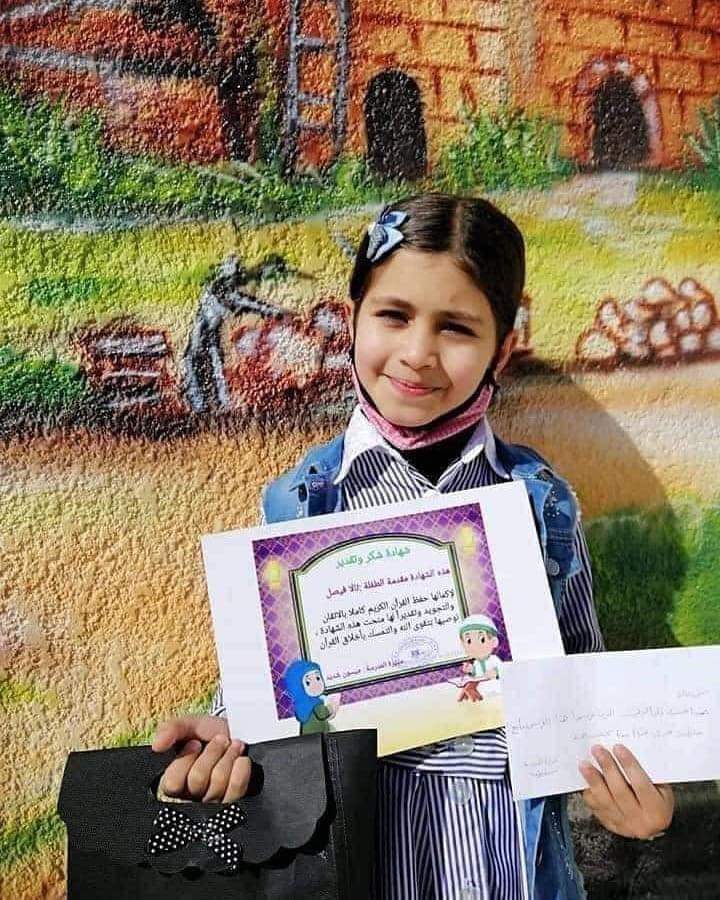 رائع شعب الجبارين .. الطفلة تالا فيصل الريماوي من بلدة بيت ريما قضاء رام الله تتم حفظ كتاب الله كاملاً وهي بعمر ٩ أعوام