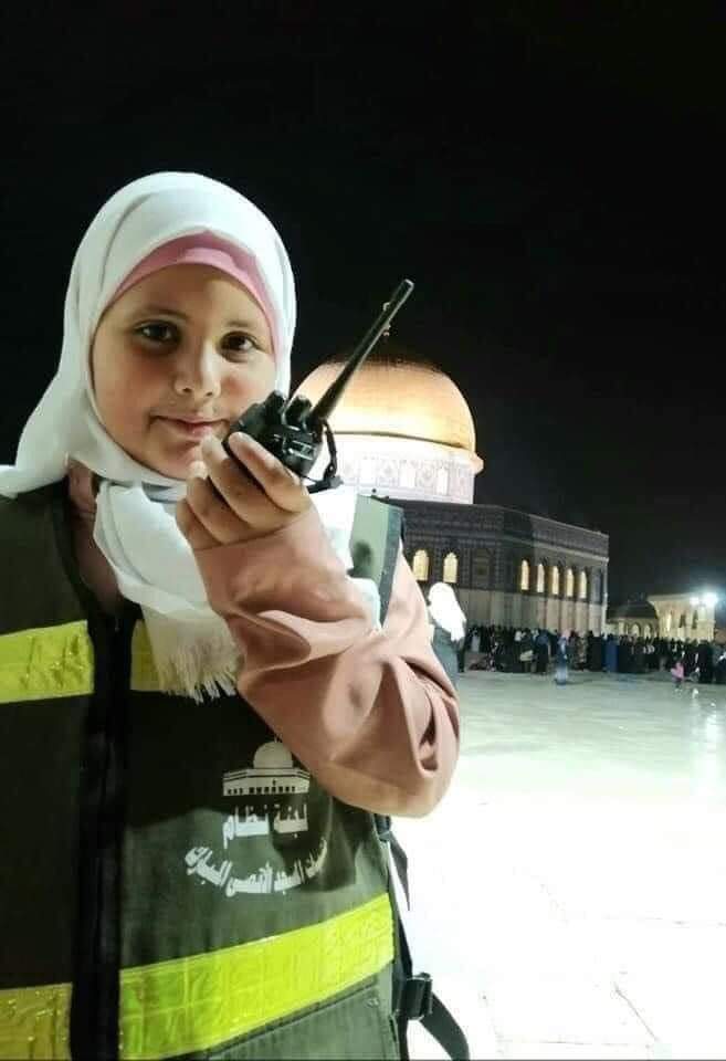 الطفلة جنّة رضوان عمرو “9 سنوات” أصرّت أن تكون ضمن لجنة نظام فتيات المسجد الأقصى لتكون أصغر عضوًا في اللجنة