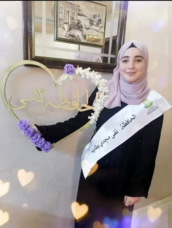 من الاردن الحبيب الفتاة الاردنية تُقى مجدي بطاينة (16 عام) من اربد تتم حفظ القرآن الكريم كاملا بتفوق ماشاء الله تبارك الرحمن