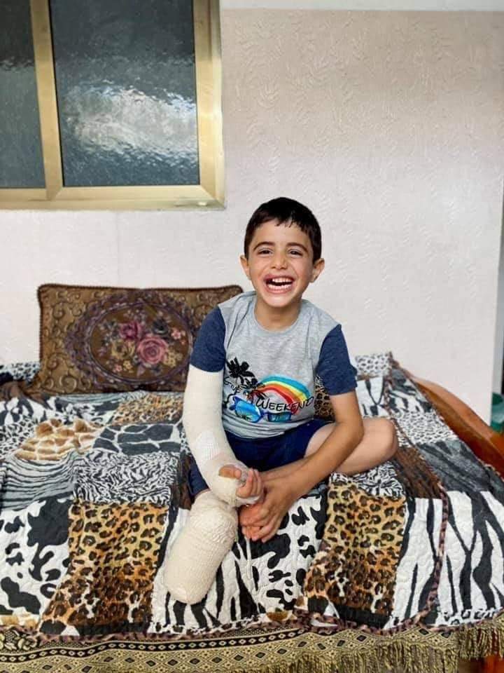 غزة ارض العزة والكرامة والصمود …الطفل صالح حامد الذي بترت قدمه جراء العدوان الاسرائيلي الاخير على قطاع غزة يقول “انا مبتسم لان قدمي سبتقني الى الجنة