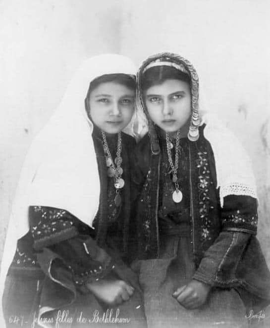 بيت لحم 1890 فتيات فلسطينيات من بيت لحم #فلسطين_زمن_العثمانلي …الإعلامية نادية عبد الحليم