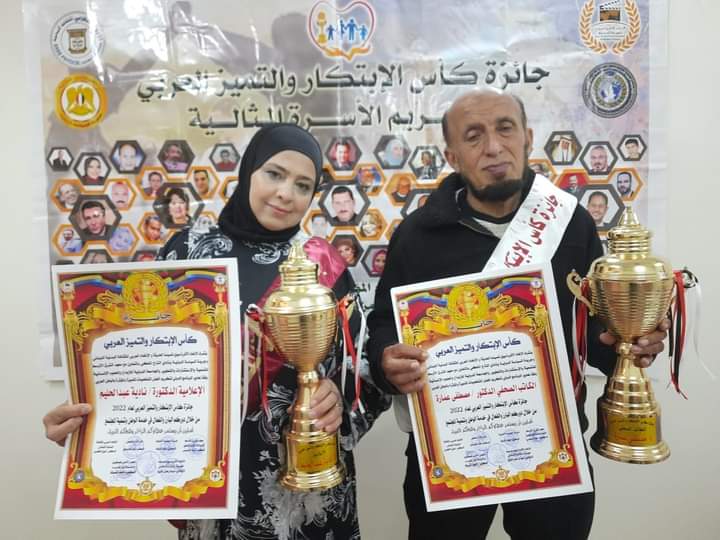 ​في أمسية ساحرة بمركز التعليم المدني بالزمالك وبحضور نخبة من رجال الإعلام والسياسة والفن والإقتصاد كرم المجلس الأعلى للصحفيين والإعلاميين العرب وجريدة السياسة الدولية والاتحاد الافرواسيوي ونادي التاج الملكي بالتعاون مع معهد الشرق الأوسط للتنمية والجامعة الدولية للإبداع والعلوم الإنسانية الكاتب الصحفي د. مصطفى عمارة مدير مكتب جريدة الزمان الدولية بلندن وزوجته الإعلامية السورية نادية عبد الحليم بمنحهما جائزة كأس الابتكار والتميز العربي لعام 2022 من خلال دورهما البارز والفعال في خدمة الوطن وتنمية المجتمع وفقا لمعايير البرنامج الدولي لتكريم أفضل الشخصيات المتميزة والمؤثرة بالوطن العربي فضلا عن وسام التميز الذهبي لدورهما البارز وديمونة العطاء من أجل ترسيخ القيم الإنسانية كما تم منحهما جائزة الأسرة المثالية تقديرا لرحلة كفاحهما الذي توجوه بعطائهما في بناء الأسرة والوطن حيث تم اختيار الكاتب الصحفي د. مصطفى عمارة الزوج المثالي في الوطن العربي لعام 2022 والإعلامية السورية نادية عبد الحليم باعتبارها الزوجة المثالية في الوطن العربي لعام 2022 .