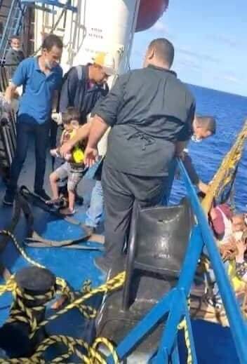 بحارة مصريين ينقذون قارب يحمل أكثر من 60 فرداً أغلبهم سوريين نساء وأطفال في عرض البحر المتوسط ، انطلق من لبنان منذ عدة أيام