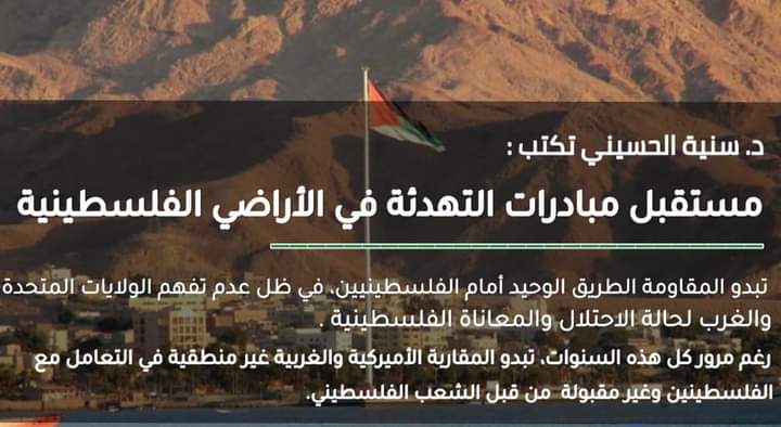 د. سنية الحسيني 2023-03-02 شهدت الأراضي الفلسطينية العديد من مبادرات التهدئة في الأيام الأخيرة، في…