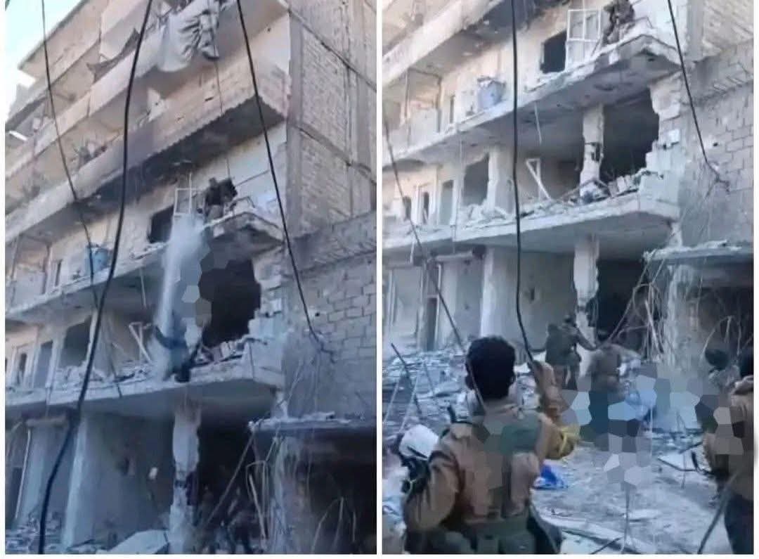 انتشر في الآونة الأخيرة مقطع فيديو يظهر فيه عناصر يتبعون للجيش السوري يلقون فتاة من سطح بناء
