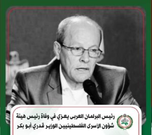 ahmed 0 تعليقات رئيس البرلمان العربى يعزي في وفاة رئيس هيئة شؤون الأسرى الفلسطينيين الوزير قدري أبو بكر