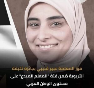 ahmed 0 تعليقات المعلمة الفلسطينية عبير رشدي قنيبي تفوز بجائزة “المعلم المبدع” على مستوى الوطن العربي