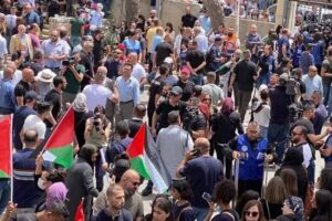 ahmed 0 تعليقات قوات الاحتلال الإسرائيلي تعتدى تعتدي على جنازة الصحفية شيرين ابو عاقلة وتعتدي على الشبان بالضرب المبرح وسقوط النعش بعد هجوم سلطات الاحتلال على الجنازة
